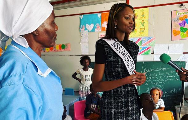 Reigning Miss Namibia Jameela |Uiras, together with the nbc Cares and Miss Namibia Pageant, have donated items worth N$20,000 to the Dr. Frans Indongo Special Care Centre, located in Okandjengedi in the Oshana Region.