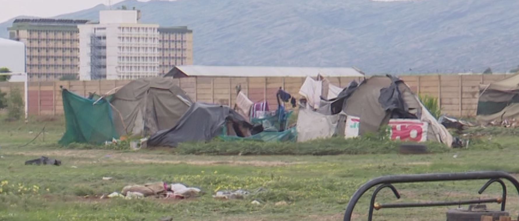 Upon the nbc News team's visit to the stadium, most of the tents that were provided by the Office of the Prime Minister in 2020 were worn out and could not withstand the impact of the rain and strong winds.