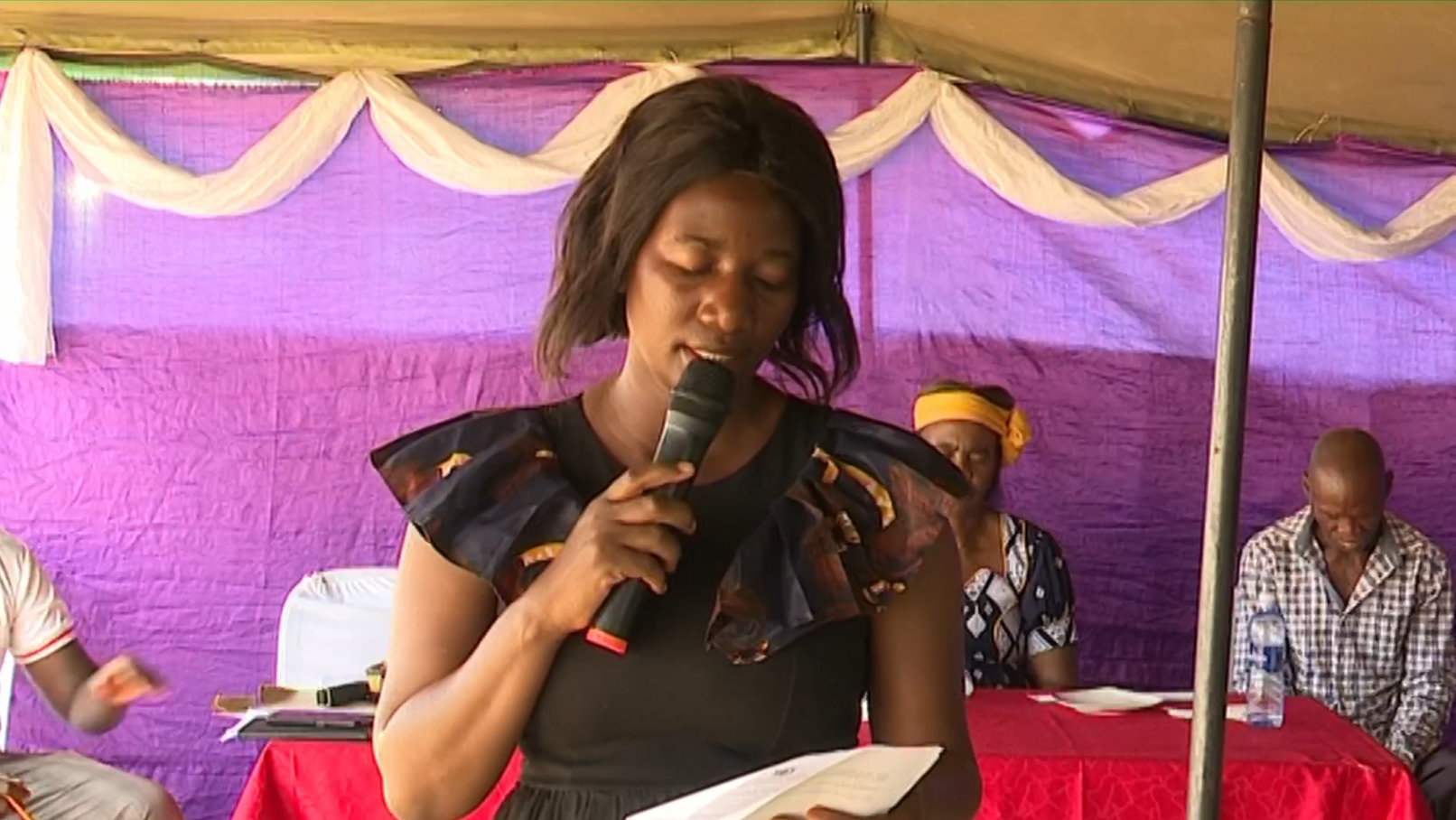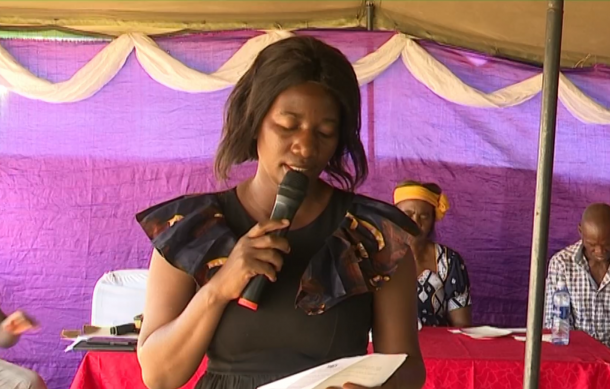 A former adult education learner, Emiliye Sikarakatji, shared her testimony. "Some of us, when asked to write our names back in the day, would not know what to do. I did not even know how to sign. But when I joined literacy, I really learnt a lot. We started off struggling. The teacher would hold my hand and show me how to write. As time went by, I started writing my name well, just because of literacy, and now I can say, 'How are you? Thank you very much'."