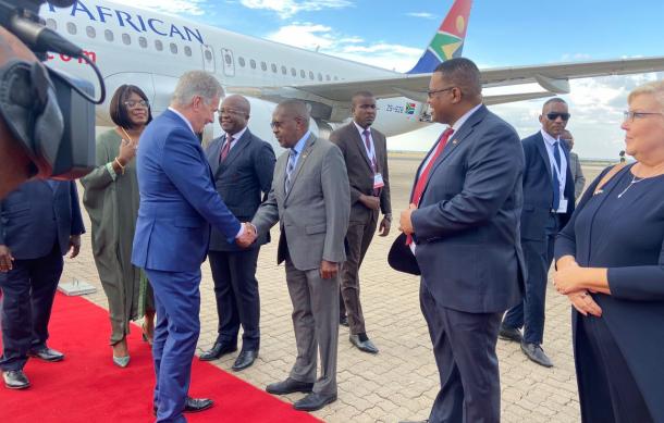 Finland's President, Sauli Niinistö, has arrived in Namibia on a state visit.