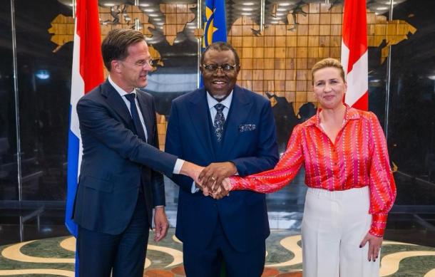 Mark Rutte and Mette Frederiksen are currently meeting at the State House with President Hage Geingob and other senior officials.