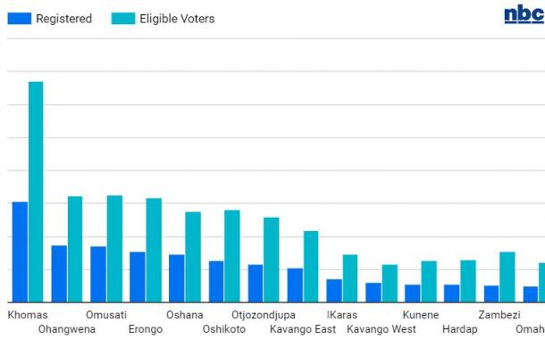 Omaheke remains the region with the lowest number of registered voters, at 24,261 out of the 60,053 eligible voters. Of the 335,354 eligible voters in the |Khomas Region, only 152,920 have registered so far.