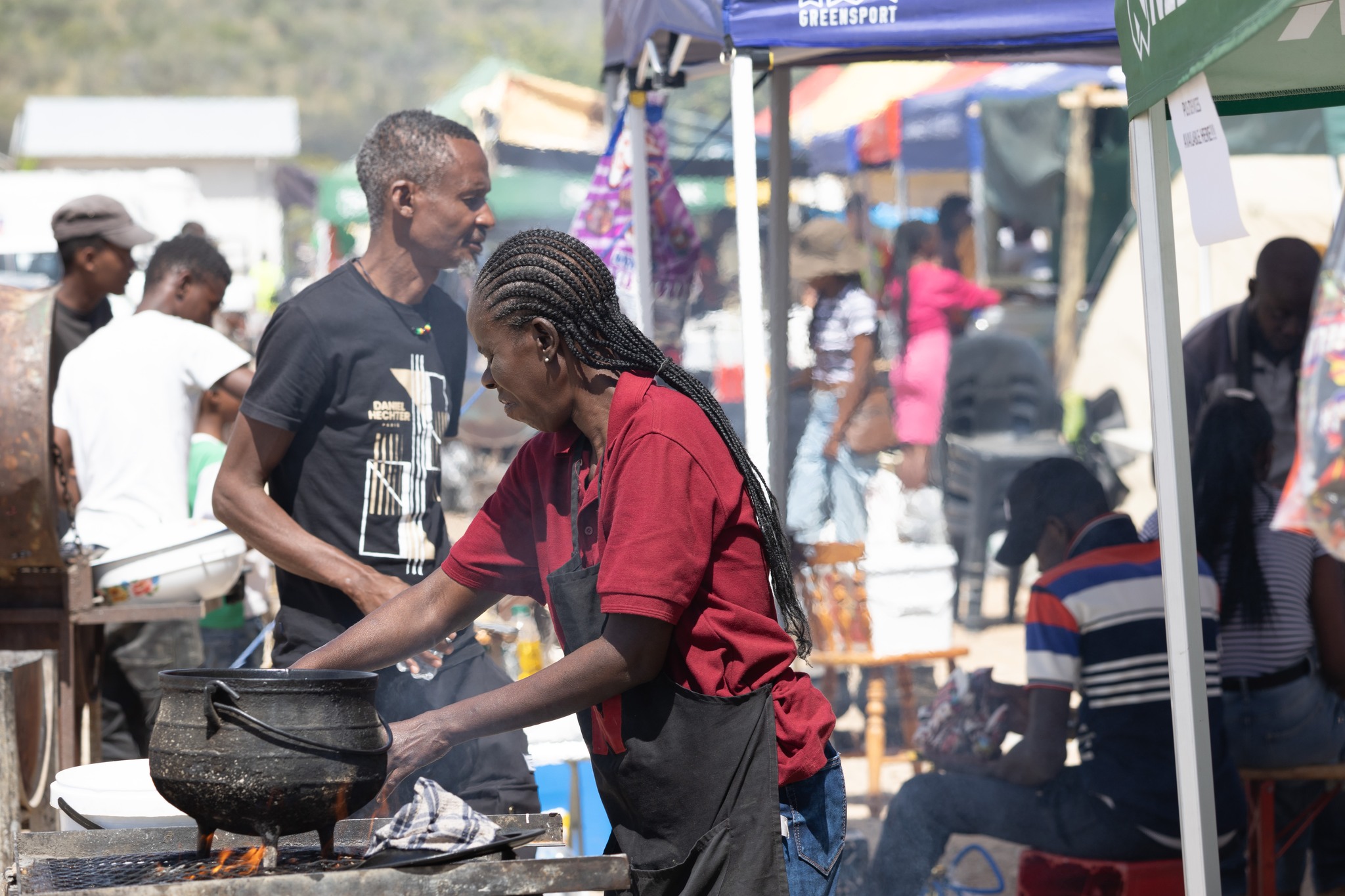 Stalls mostly operated by local vendors lined the stadium's perimeter, offering goods and food to enthusiastic crowds.