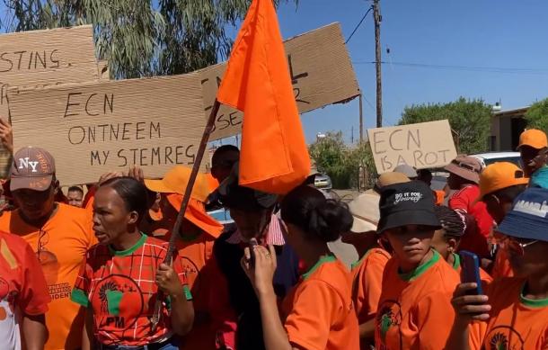 Party members marched to the ECN's office in Keetmanshoop to hand over a petition, demanding an independent investigation into the registration process.