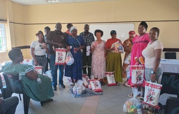 Sixty elderly people received food parcels with a total value of N$20,000, consisting of various food items.