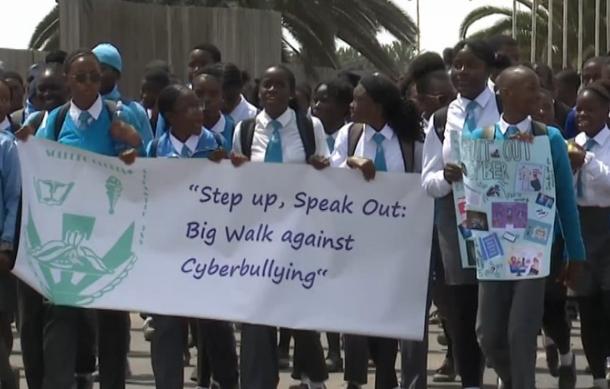 Teachers and learners from Atlantic Junior Secondary School organised a walk to raise awareness about cyberbullying and encourage young people to practice responsible online behaviours.