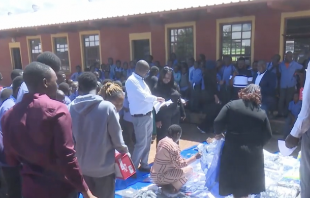 Salufu Mwazi, the school's head of department for mathematics and science, received the donation on behalf of the school.
