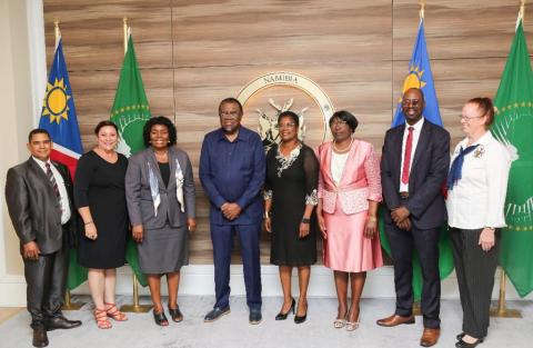 Minister Anna Nghipondoka and Deputy Minister Faustina Caley, accompanied by the senior leadership, submitted the report to President Hage Geingob at State House.