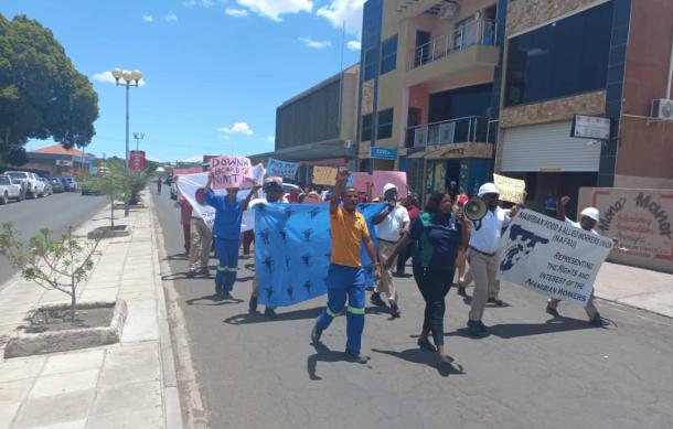 At Arandis, workers marched from the shopping centre to one of the two campuses, at the town.