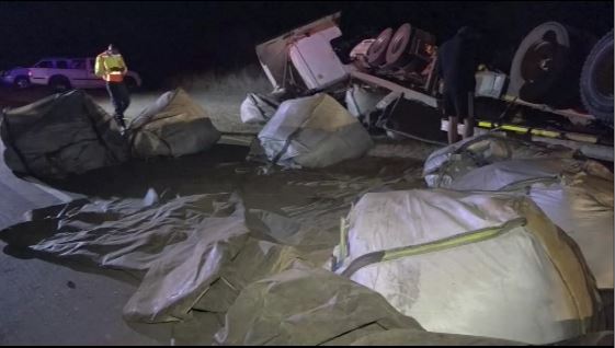 It took the police and some Military personnel and trucks more than seven hours to remove the truck and bags of copper from the road before the road became open to motorists.