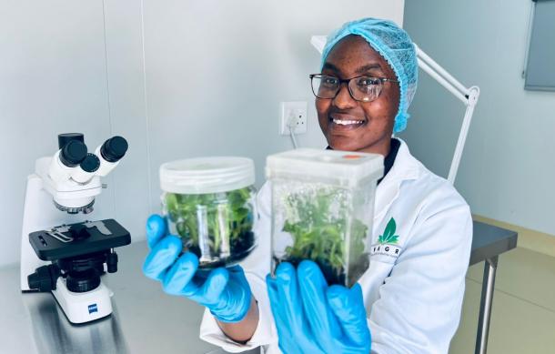 "So here I got a chance to learn different skills, and this is one of them: tissue culture of plants. So it has been very inspiring to me. And I really love the process. So I just want to encourage students, mainly, that they are welcome to do their research projects with us here at Avagro because this is like applied research. So it requires a lot of patience and passion about what you're doing, and this will actually help with food security in the long run because, I mean, it's the multiplication of fruit trees."
