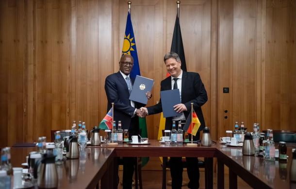 Germany's Minister of Economy and Climate Action and Vice-Chancellor Robert Habeck held discussions with Namibian Minister of Mines and Energy Tom Alweendo during the Berlin Energy Transition Dialogue.