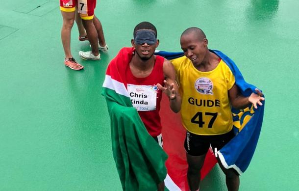 The Namibian team at the Para Championship in Kobe, Japan, has scooped their first gold medal in the 400m through Chris Kinda and his guide, Riwaldo Goagoseb.