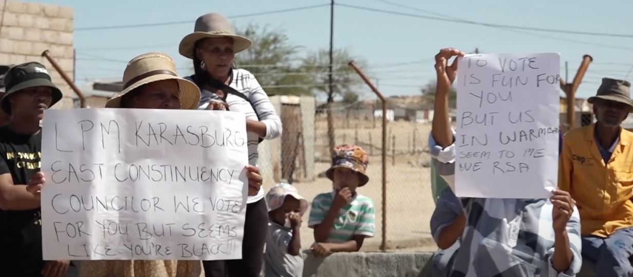 A group of Warmbad settlement community members protested over a litany of concerns they claimed hampers socio-economic development.