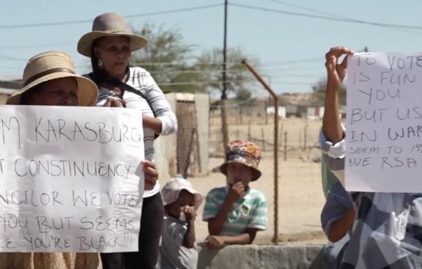 Charles Laberloth read the petition on behalf of the protestors and said, "The way things are managed, especially in Warmbad, gives us the feeling that it is the Odendaal Plan again, just in another government, just systematically. And it is painful that Warmbad has been neglected for these past years by the government and people we entrusted."