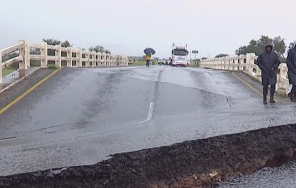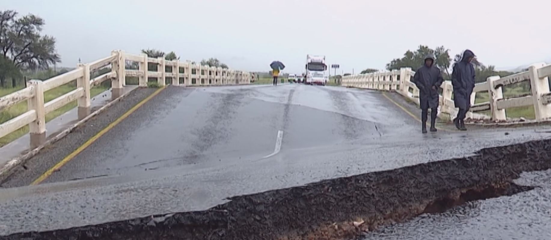 No alternative route is available for Rehoboth-Windhoek traffic. Some drivers are leaving their vehicles and crossing the bridge on foot, meeting relatives or friends on the other side. Warning signs have been placed to alert motorists of the danger.