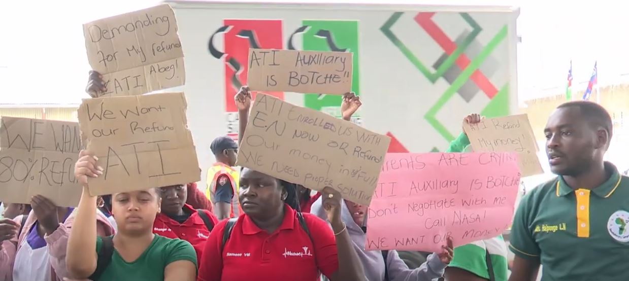 Students from the Atlantic Training Institute (ATI), located in the Northern Industrial area, marched in frustration over the institution's decision to discontinue the Auxiliary Nursing Bridging Programme, for which they have already paid tuition.