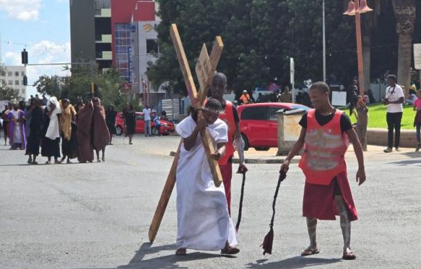 In a public demonstration of faith, members of the Potter's House Christian Fellowship Church took to the streets of Windhoek to portray the crucifixion of Jesus Christ.