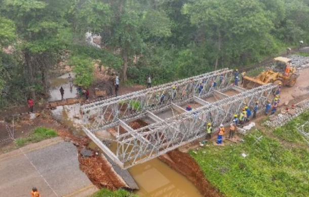 An Acrow bridge, a versatile modular bridge for rapid access, has been installed and is now in use.