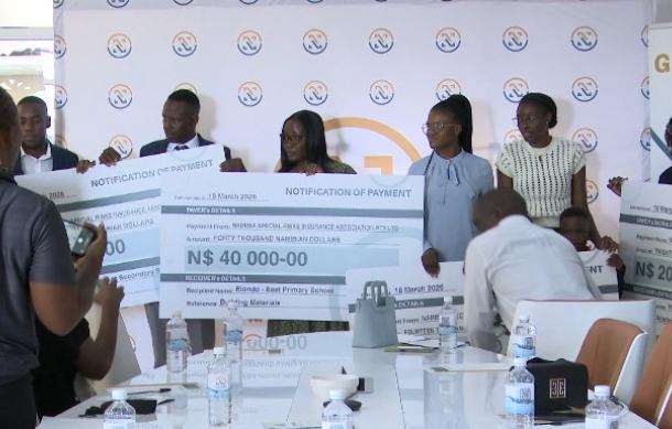 The five beneficiaries are Kids Care College, which received N$414,518; the International University of Management, which received N$20,000; and finally Elondo-East Primary School and Negushe Secondary School, each of which benefited from a N$40,000 donation.