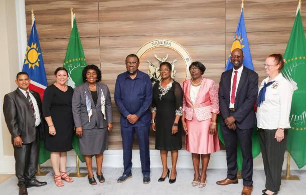 Minister Anna Nghipondoka and Deputy Minister Faustina Caley, accompanied by the senior leadership, submitted the report to President Hage Geingob at State House.