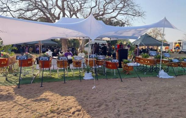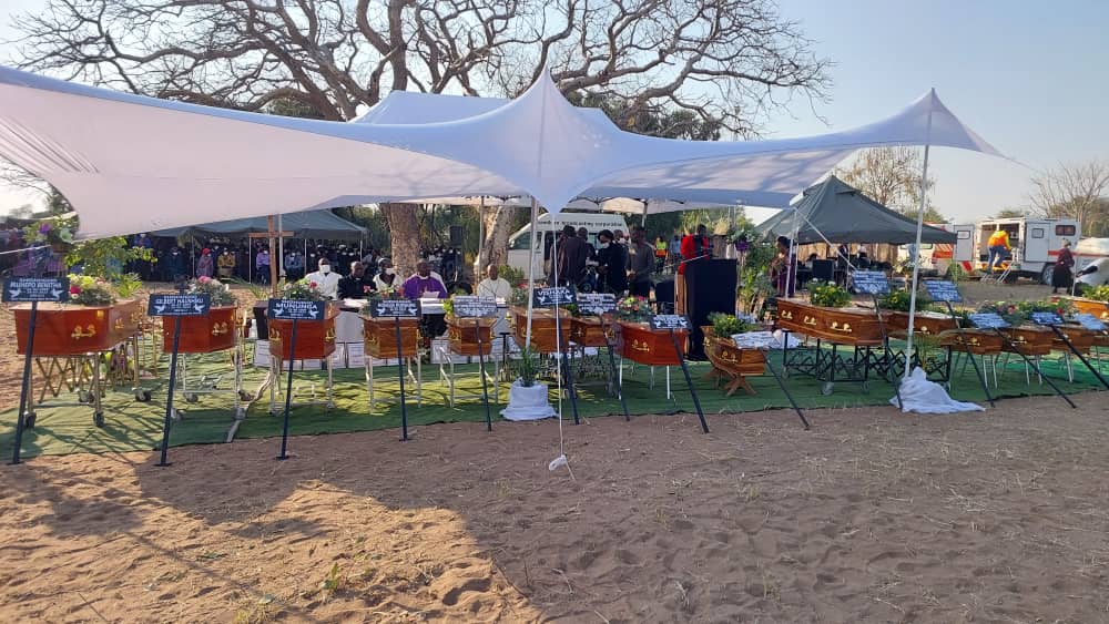 The 16 deceased members of the Shishugho family were buried today at Kayova Village in Kavango East's Ndiyona Constituency.