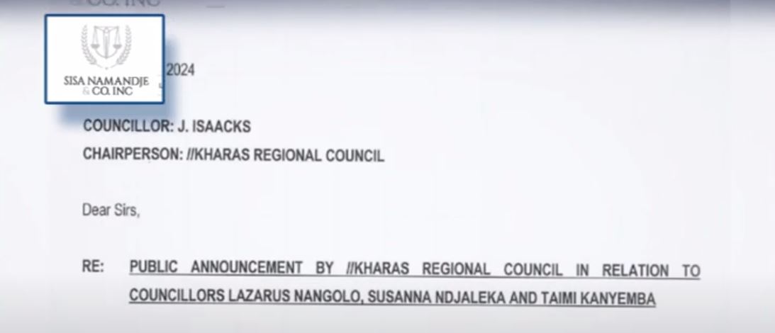 In a letter addressed to the council's chair, Joseph Isaack, through their lawyer, Sisa Namandje, the Swapo Party council representatives demanded that the decision to terminate their membership be rescinded by ten o'clock on Thursday.