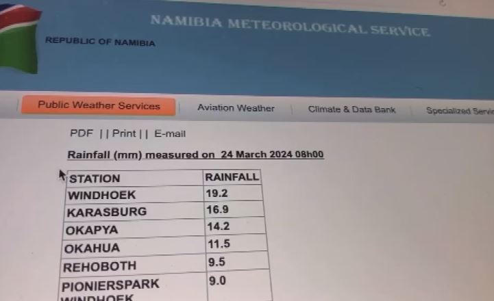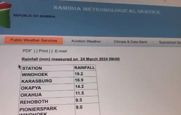 Figures revealed on the Namibia Meteorological Services website show that the highest rainfall of 19.2 millimetres measured today was recorded in Windhoek.
