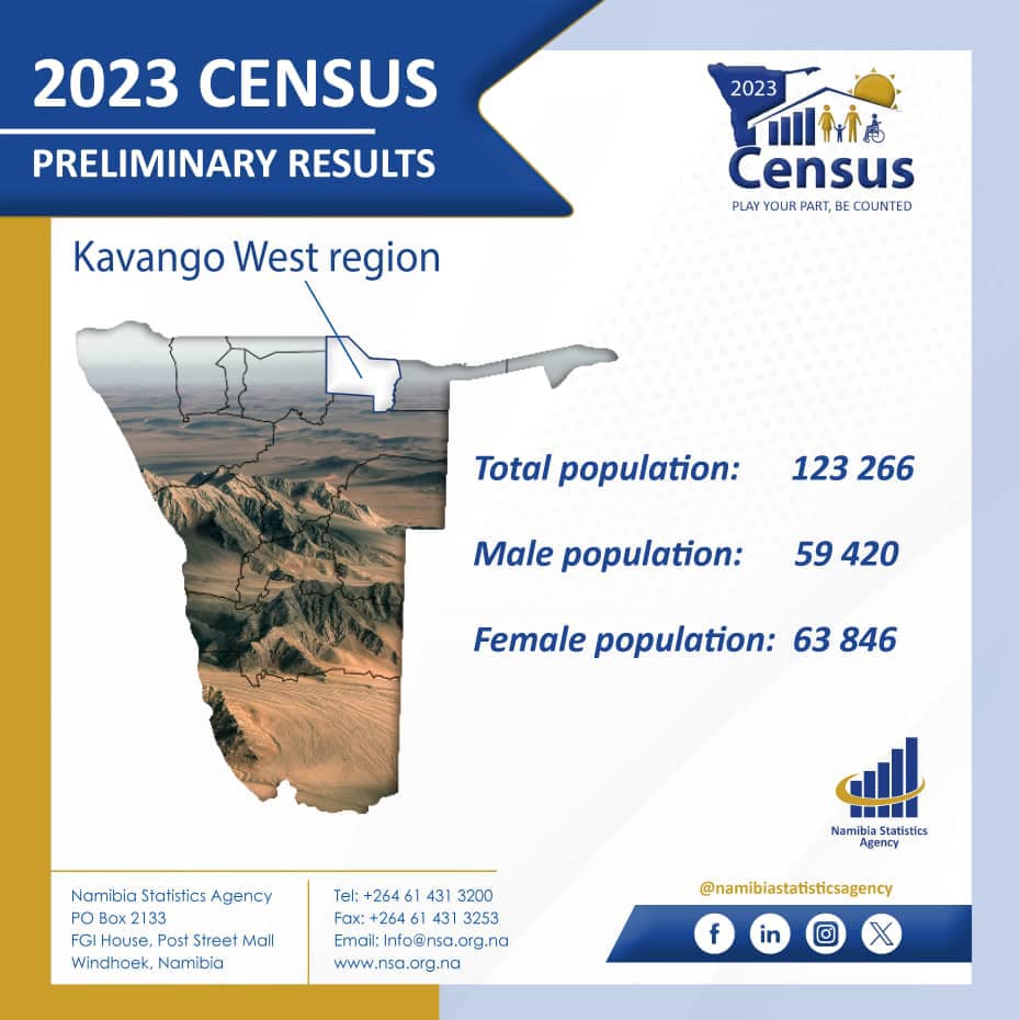 The Kavango West Region has experienced a remarkable population surge of over 40.4% between 2011 and 2023.