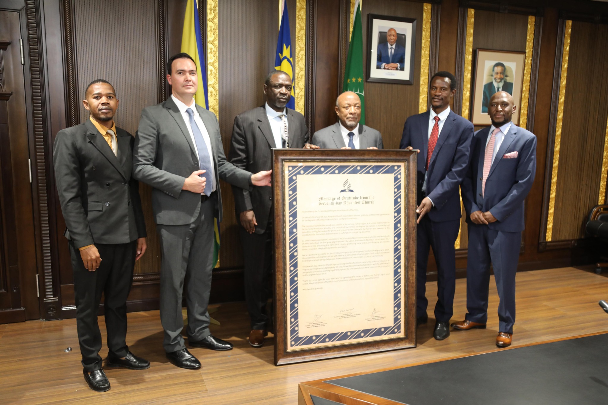 "Your commitment to protecting the rights of all citizens resonates deeply with our values and mission. We are particularly grateful for the provisions that uphold freedom of religion and belief, allowing individuals to practice their faith freely and without fear of persecution. This freedom is essential for the spiritual well-being of all people and enables diverse communities to harmonise," said Pastor Sabyn Ndjamba, President of the Namibia South Conference.