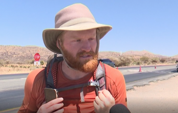 Some days and nights saw him camp along the road, but eventually, on day 48, he arrived in Windhoek, where he was welcomed by social media fans at the Police Road Block opposite Heroes Acre.