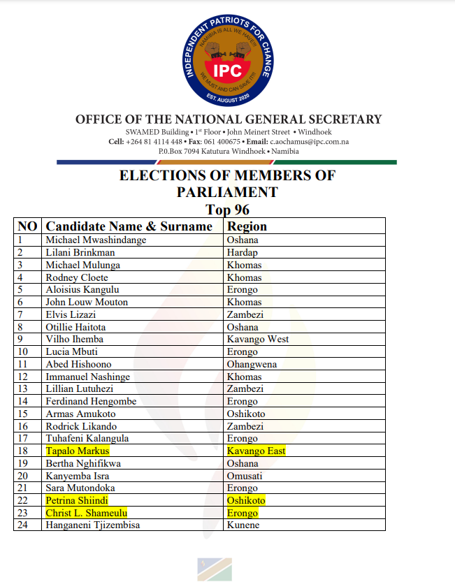 The Independent Patriots for Change (IPC) has announced its top 96 members of parliament and will launch its manifesto tomorrow.