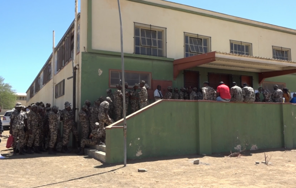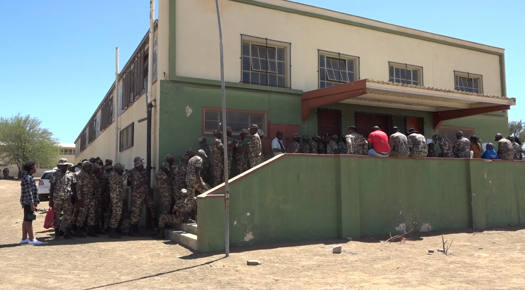 At the W.K. Rover Hall at Keetmanshoop in the ||Kharas Region, law enforcement members, including police, correctional service, and defence force officers, queued up as early as six o'clock.