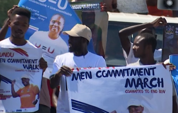 Men of various ages marched through Rundu as part of the 16 Days of Activism, which aims to create awareness of gender-based violence.