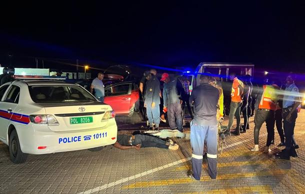 Following swift action by NamPol's Serious Crime Unit, three suspects were arrested at the Okapuka police roadblock last night.