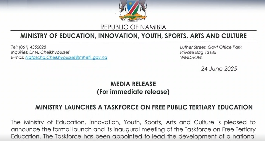 This group will develop the technical, financial, and policy frameworks necessary for implementing free tertiary education at public institutions next year, as announced by President Netumbo-Nandi-Ndaitwah during her State of the Nation address.