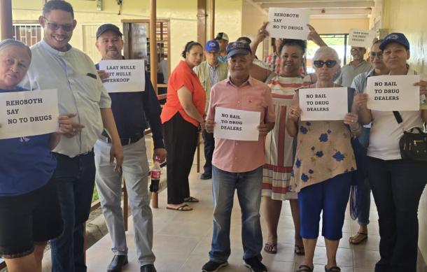 Naomi Fisch, along with Steve Schneiders, Menchel Beukes, Revilo Diergaardt and Brendon Vrieslaar, appeared again at the Rehoboth Magistrate’s Court today following their initial appearance yesterday, which was marked by a community protest opposing the granting of bail.