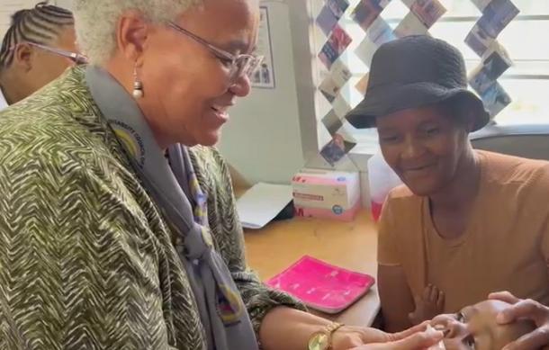 Her tour started at Epako Clinic in Gobabis, where she administered the first polio drops—launching the first round of Namibia's nationwide polio vaccination campaign in the region.