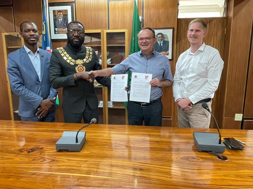 The two municipalities signed an agreement for sustainable development and environmental protection. The signing of this agreement comes amidst plans by Otjiwarongo Municipality to set up a Biomass Industrial Park project aimed at producing wood chips, charcoal, char briquettes, animal feed, bio-fuel, and bio-char, which will be exported to Germany.
