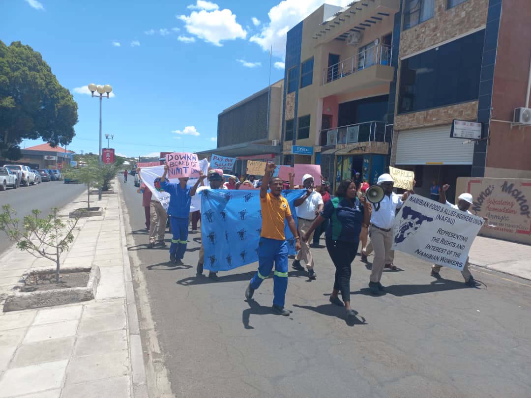 At Arandis, workers marched from the shopping centre to one of the two campuses, at the town.
