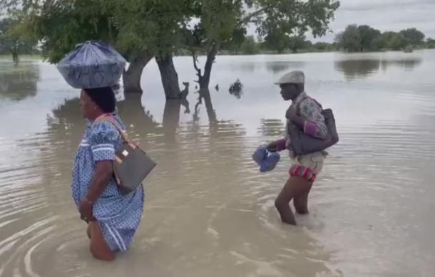 Onghala residents are forced to walk long distances to Engela Hospital, a journey that is even more perilous now that it requires moving through flood waters.