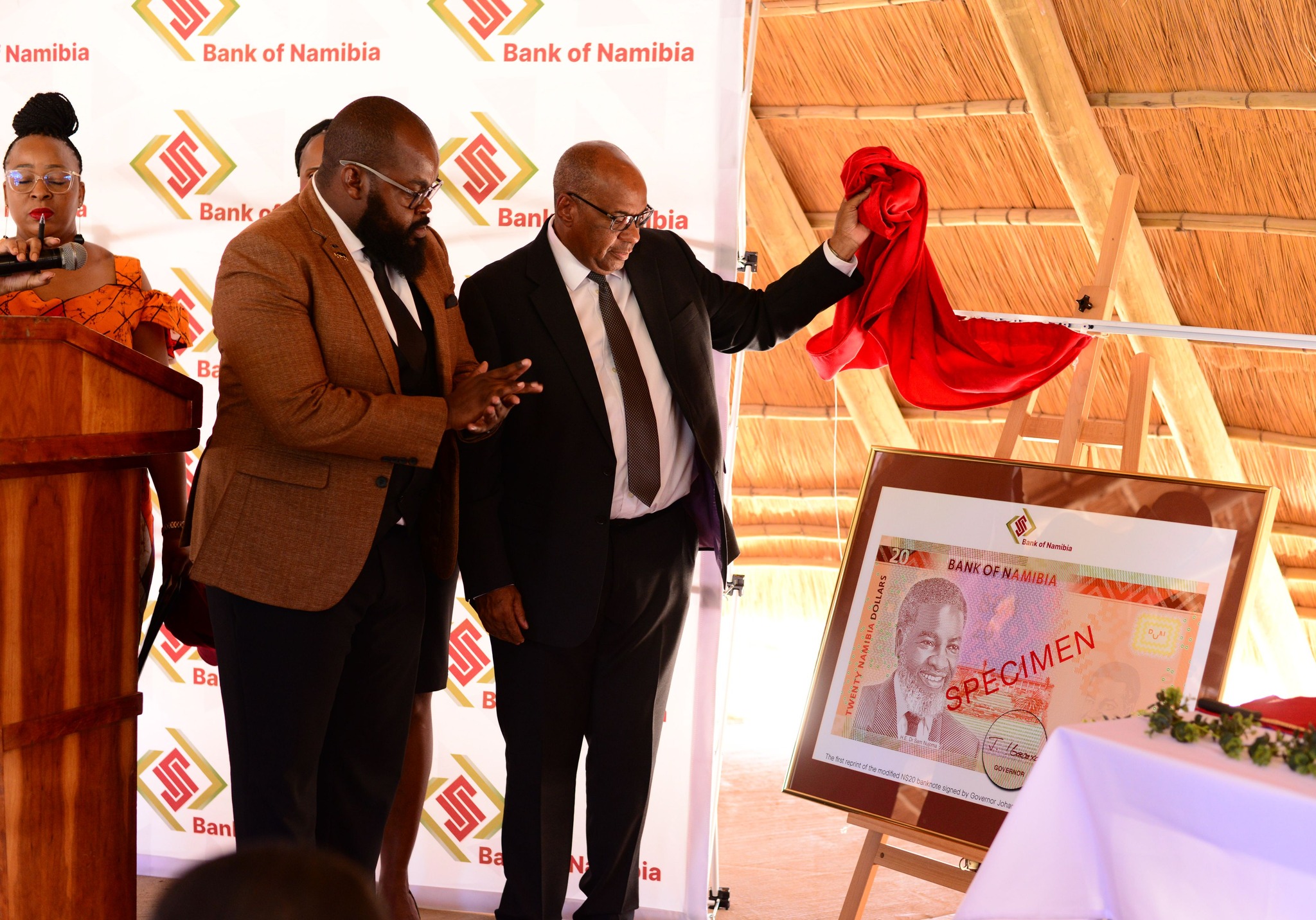"It is my pleasure to officially unveil the modified N$20 note."
