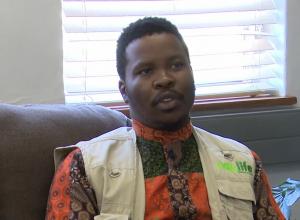 Ndumba crafts life-size wooden elephant 'Ndjamba'